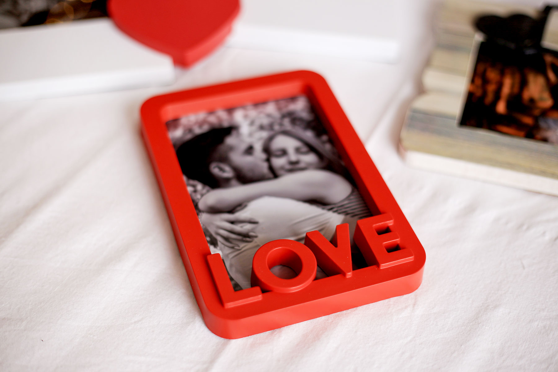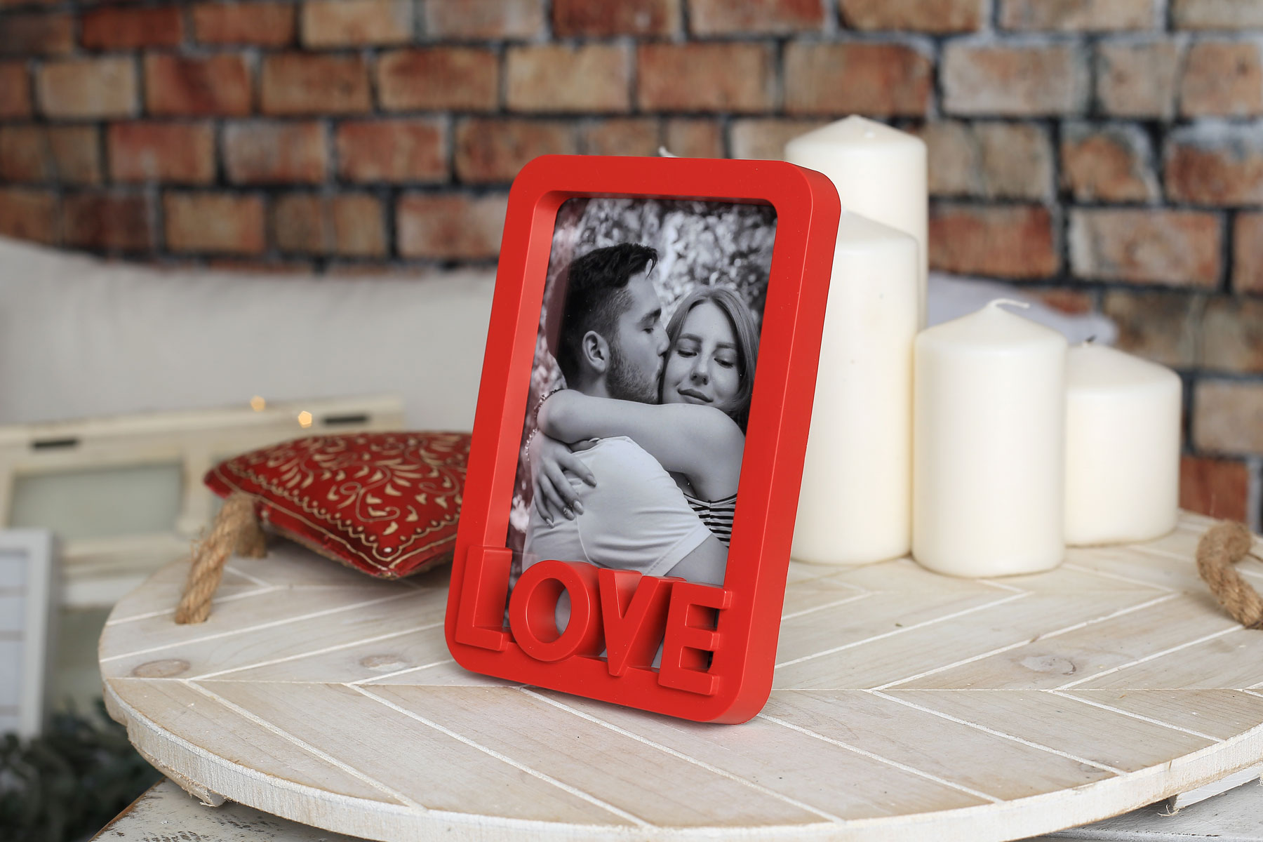 Añade un toque de pasión y amor a tu decoración. Este original marco, de color rojo con un toque de ‘Love’ en relieve, es perfecto para la foto de esa persona especial que más quieres.