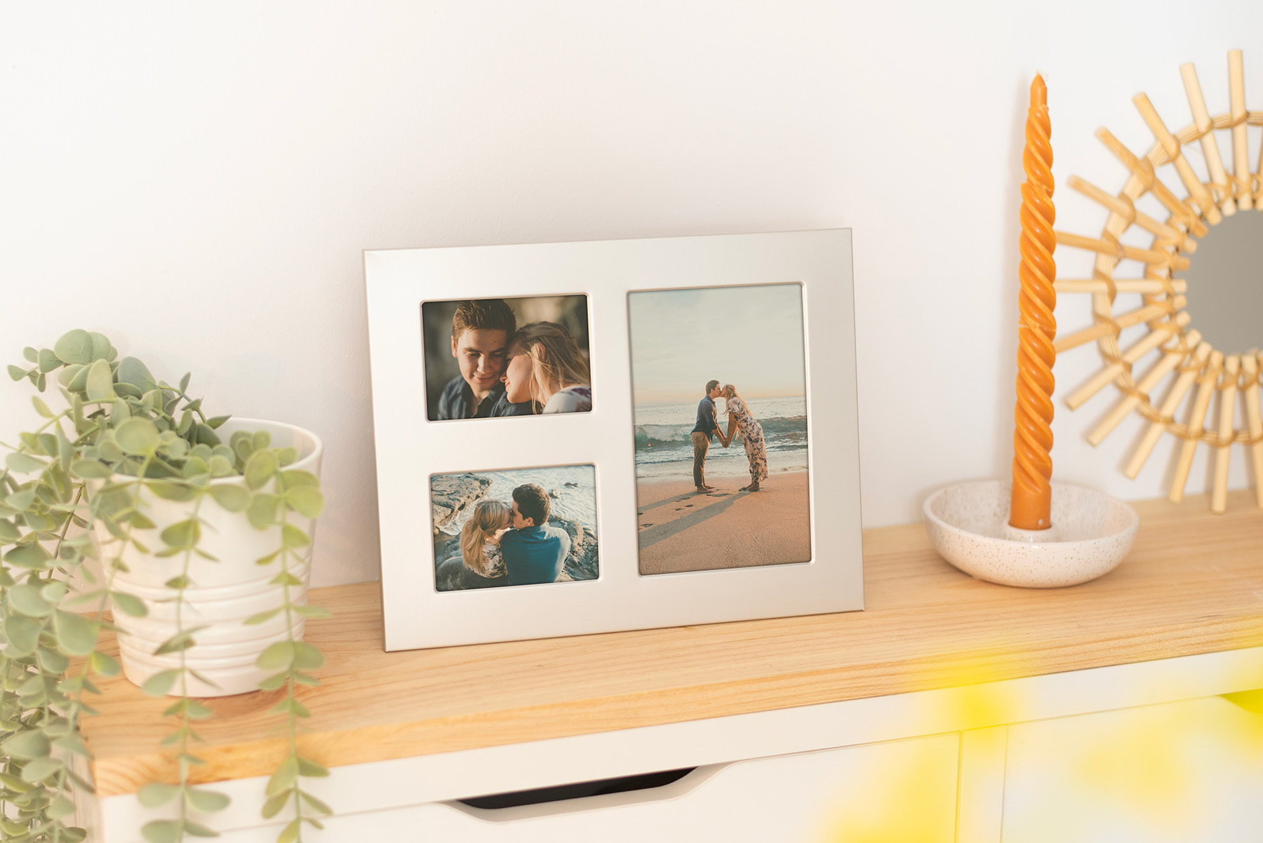 Cada marco se entrega con las fotos impresas y colocadas, listo para regalar y añadir un toque personalizado a cualquier espacio.