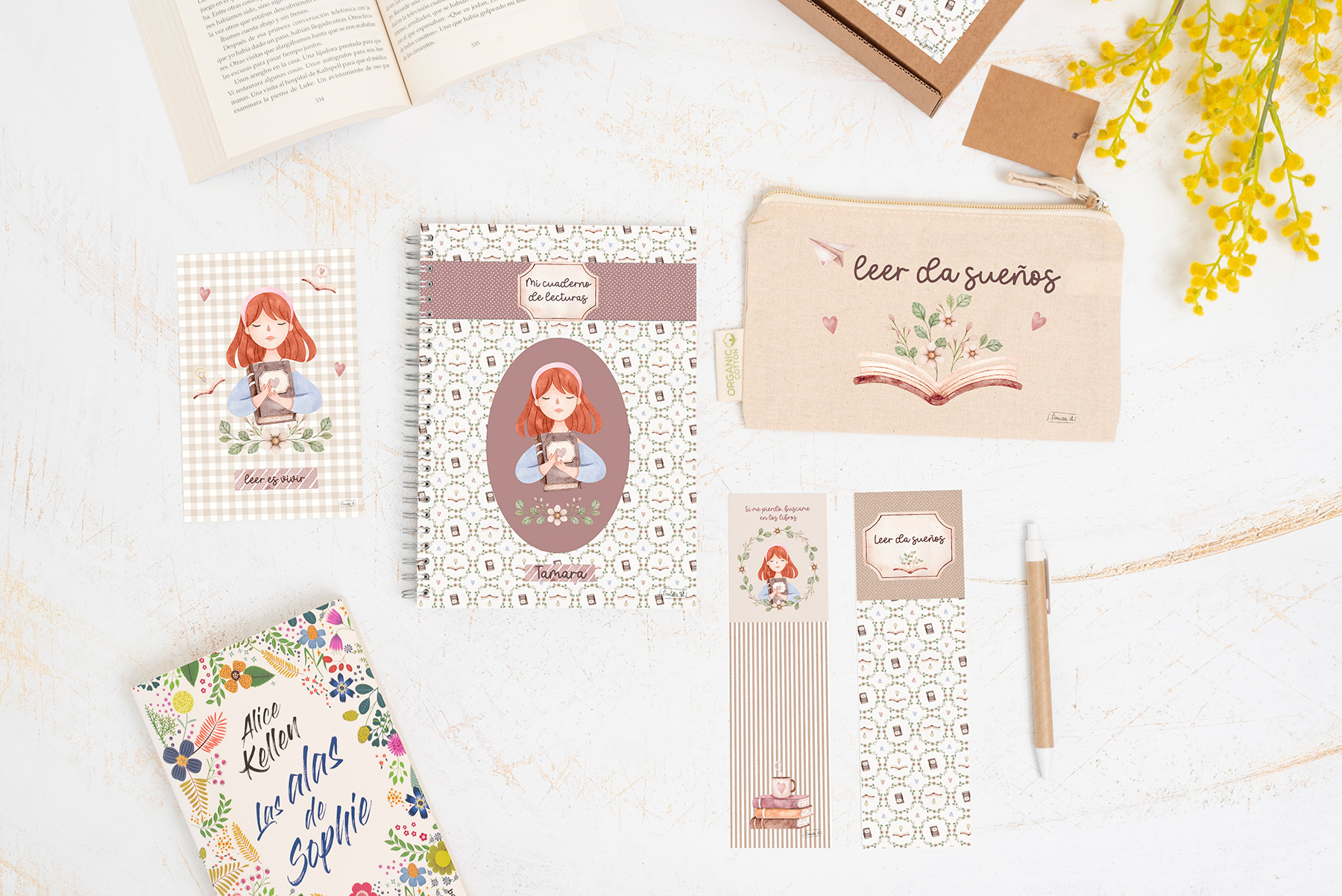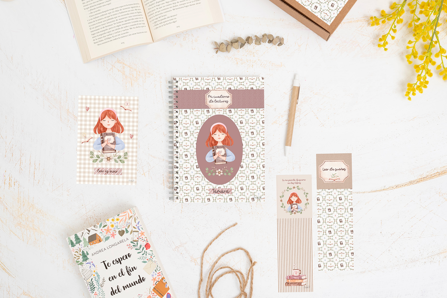• Pack nº2: Cuaderno de lectura, postal y dos marca páginas.