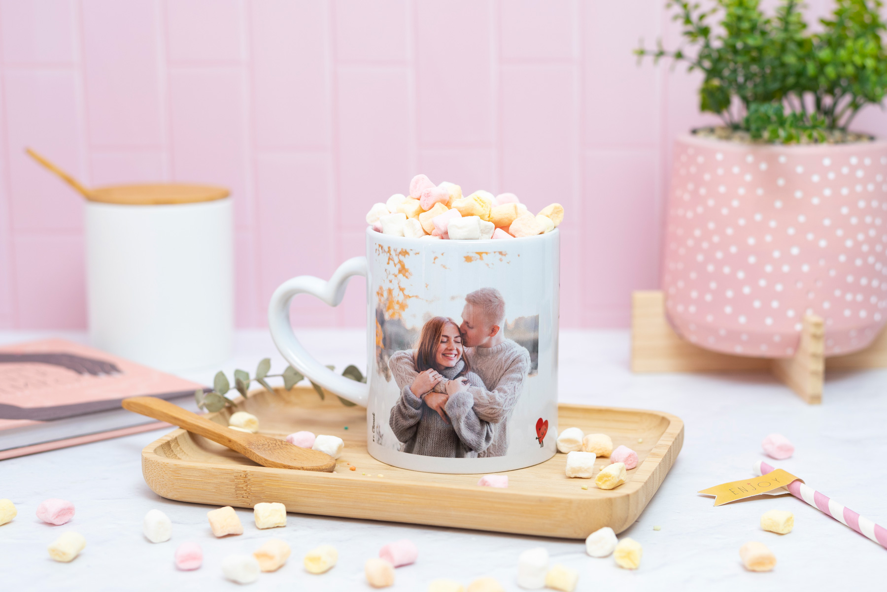 Nuestra taza de enamorados es un detalle romántico con el que sorprenderás a tu pareja. Un regalo ideal para San Valentín, para vuestro aniversario o para cualquier día ¡sorpresa!. Una forma especial de empezar el día con una imagen de vuestros mejores recuerdos.