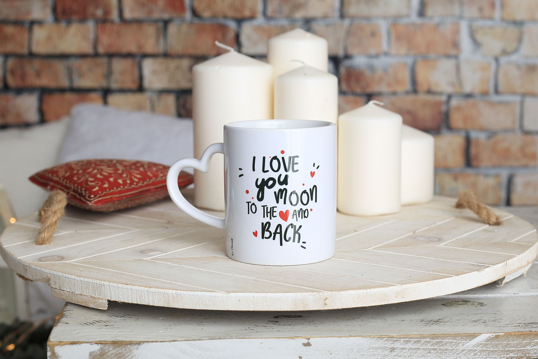 - Taza de cerámica con asa en forma de corazón.