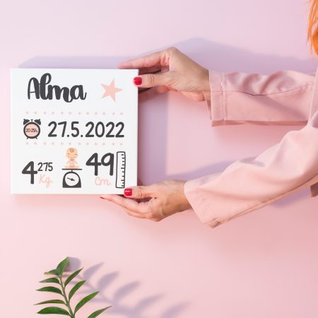 Una fecha, una hora, un peso y una medida pueden ser números sin importancia por sí solos, pero que, al unirlos a un nombre, llegan a adquirir un significado especial. Reúne todos estos detalles en un sencillo diseño y plásmalo en un cojín para crear un recuerdo que colocar en la cuna junto a tu bebé mientras crece.