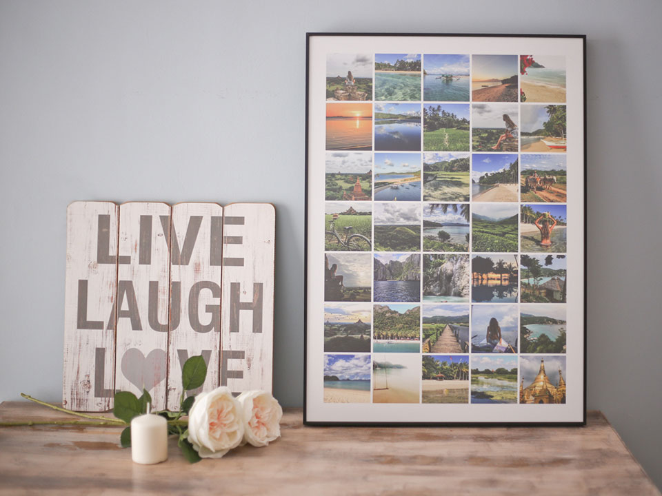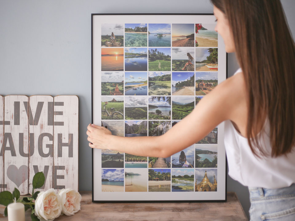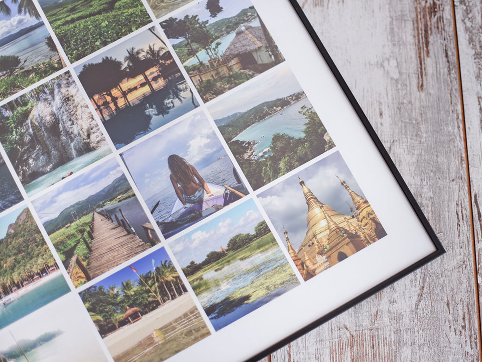 Crea un póster collage online directamente con tus fotos de Instagram, Facebook o dispositivo. Sube las fotos que quieras, elige uno de los acabados de collage, ordena las fotos como más te guste y tendrás tu collage personalizado listo.