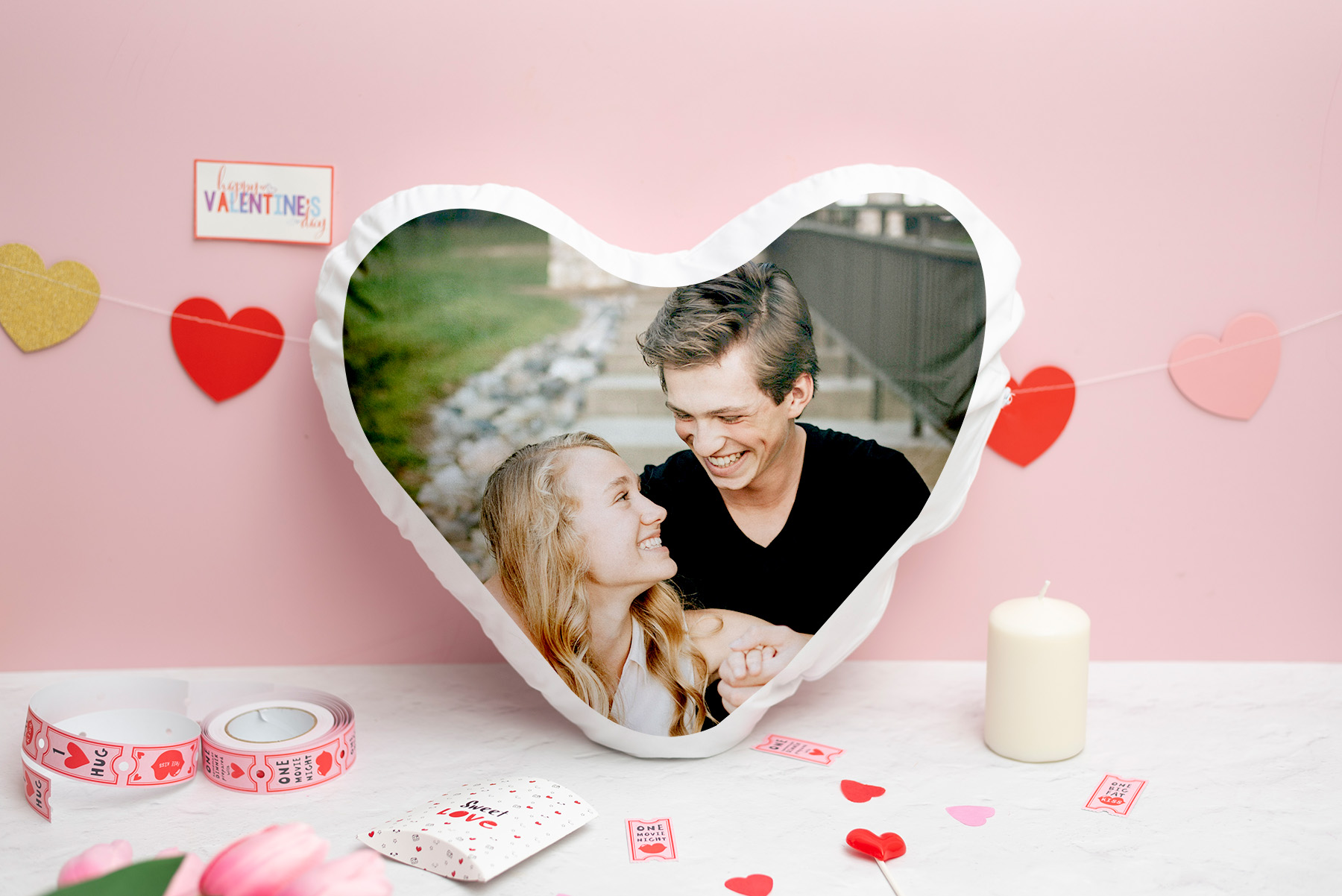 Nuestro Cojín Personalizado en forma de Corazón es el regalo perfecto para expresar tus sentimientos en San Valentín, aniversarios o cumpleaños. Crea tu cojín con nuestro editor online e imprime tus fotos, nombres y frases románticas.